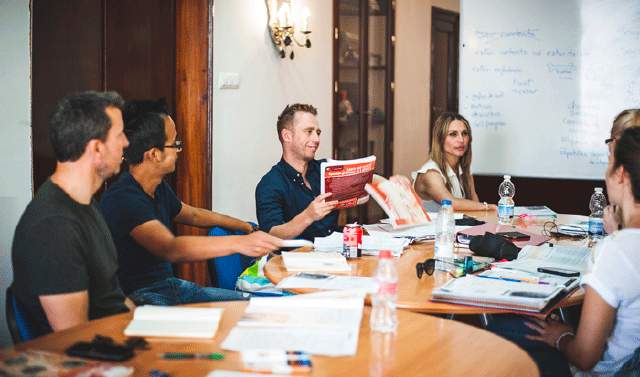 سيكون المدرسون المحليون ذوو المؤهلات العالية في صميم خبرتك. في اليوم الأول من الفصل، سيقوم الطلاب بتقييم قدراتك وتفضيلاتك من أجل تصميم البرنامج وفقًا لذلك. وسوف يدعمونك داخل الفصل وخارجه، وتقييم تقدمك وتوجيهك نحو الطلاقة.
