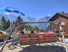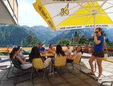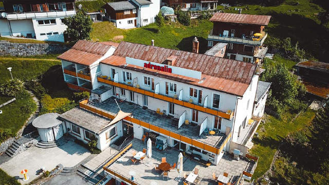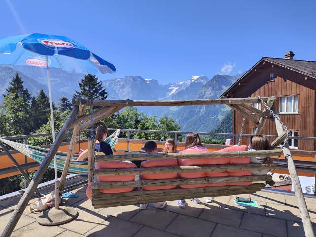 The camp in Braunwald takes place in our Adrenalin Backpacker Hostel. Here we have plenty of space: three large terraces, single, double, 4-bed, 6-bed and multi-bed rooms and a bar with syrup and other non-alcoholic delicacies! There is also a table football and a billiards table. The child-friendly and sunny ski area is a 2-minute walk away.