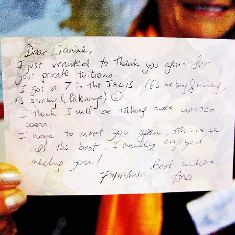 إظهار التفاصيل » اقرأ أكثر ...I want to thank you for all the help you give to the students all year. Sometimes, I take this for granted, but we are actually really lucky to be managed by you, and I'm not sure if all the other English schools would put as much effort as you do. So please, just carry on like this. For me, you are great!