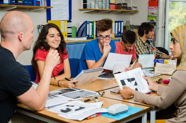 الجنسيات والاعمار مختلطة في المدرسة ودورات عديدة ومستويات عديدة وبفترات زمنية مختلفة. متوسط الاعمار هو 23 طوال العام. خلال الصيف متوسط الاعمار هو 20.