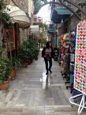 You will find souvenirs, fashion jewelry, clothes, usual supermarkets, once a week a folk market – Greek fruit and vegetables are especially tasty!