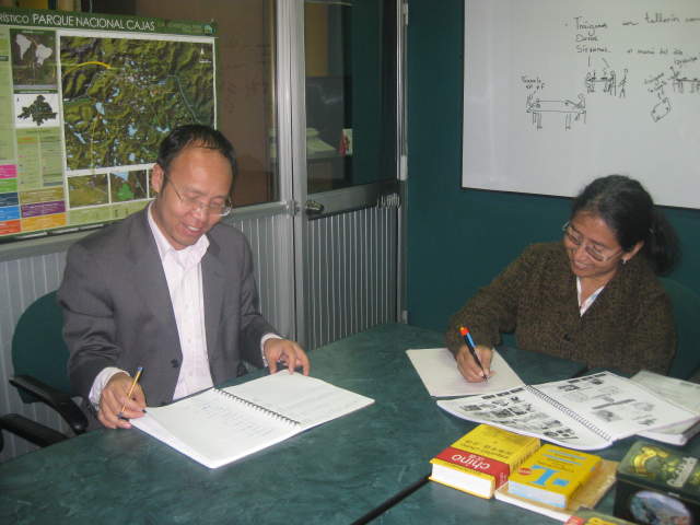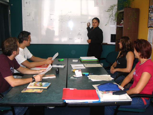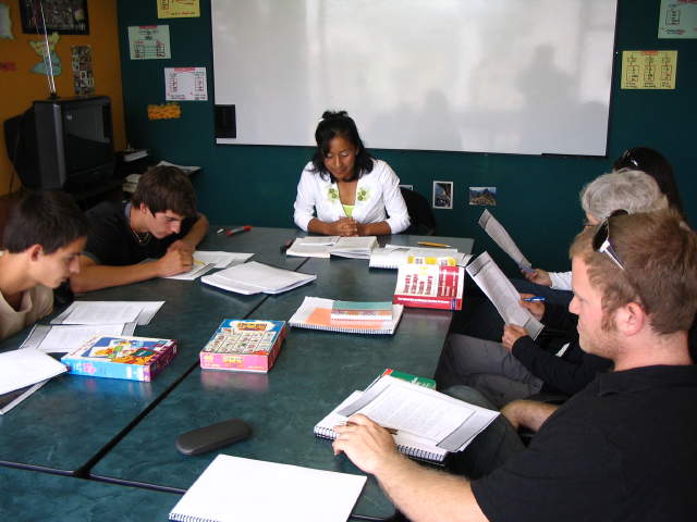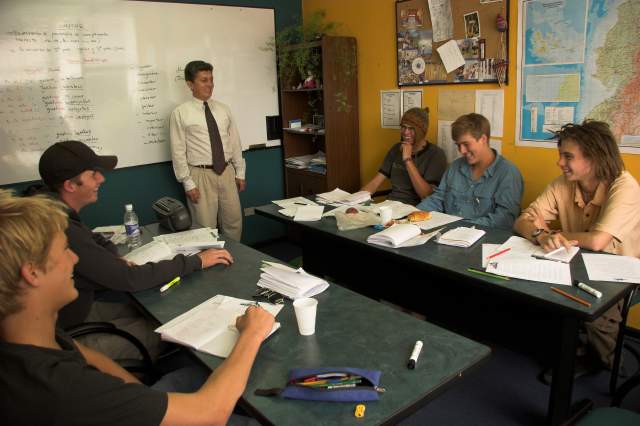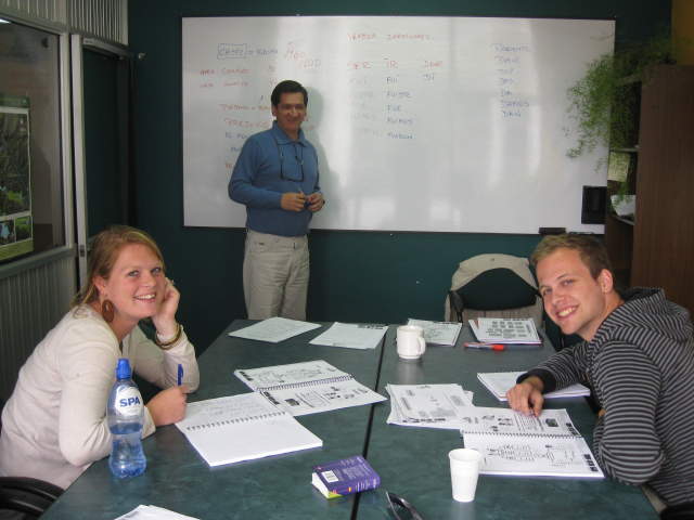 نحن المدرسة الإسبانية الرسمية حيث يأخذ دي الدبلوماسيون بوزارة الخارجية الأمريكية برامجهم باللغة الإسبانية في الإكوادور. نحن رواد في تدريس دورات اللغة الإسبانية المكثفة في الإكوادور (من فصل إلى فصل واحد وفصول مجموعات صغيرة) في المواقع التالية: كيتو ، الغابة ، الساحل وجزر غالاباغوس. تقع مدرستنا الرئيسية في قلب منطقة Quito السياحية (La Mariscal)، على بعد بناية واحدة إلى الشمال من فندق Hilton. الموقع الممتاز للمدرسة وتنوعها الواسع من الدورات الإسبانية وبرامج المتطوعين وفرص الرحلات تجعلها المكان المثالي لدراسة اللغة الإسبانية. يمكن للطلاب الاختيار من بين دورات اللغة الإسبانية العامة أو دورات اللغة الإسبانية الطبية أو برامج المتطوعين أو دورات اللغة الإسبانية للمديرين التنفيذيين وغيرهم. يمكن للطلاب أخذ من 20 إلى 35 ساعة من الفصول الدراسية في الأسبوع.