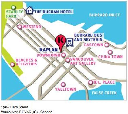 تقع مدرسة كابلان للغة الإنجليزية في فانكوفر في موقع متميز ، بالقرب من جميع أنشطة المدينة ، ولكن أيضا على بعد رحلة قصيرة فقط من بعض منتجعات التزلج الأكثر شهرة في أمريكا الشمالية. تعد فانكوفر جنة لعشاق الهواء الطلق ، ولا يوجد بها نقص في المتنزهات الوطنية الجميلة والأنهار والغابات وجزيرة جرانفيل التي تقع جميعها على بعد أقل من ساعتين من مدرستنا الإنجليزية في ساحة فانكوفر الأمامية.