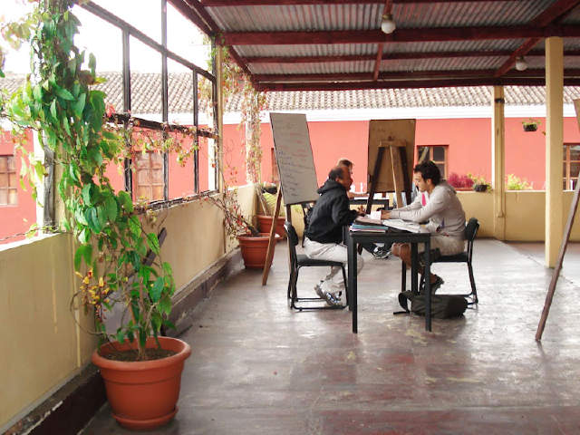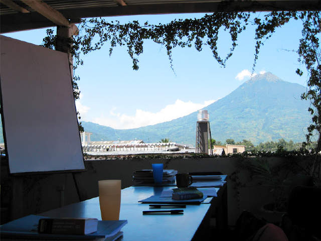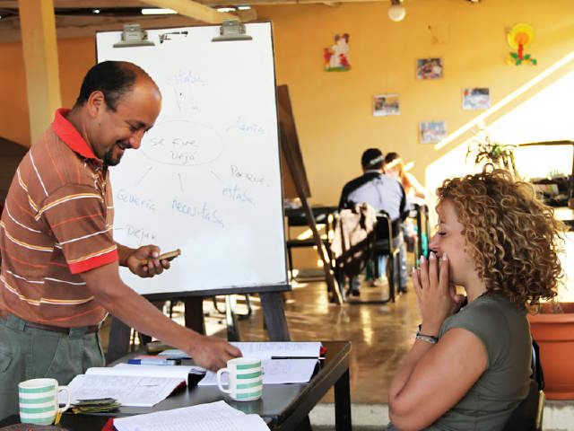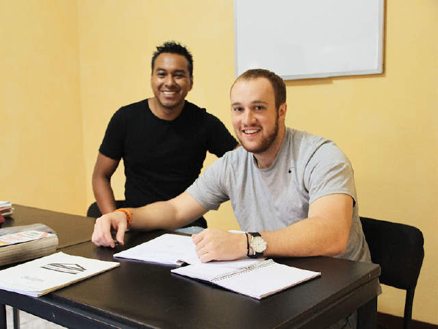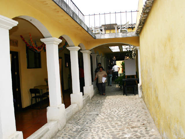 تقام الفصول الإسبانية في مدرسة تم تجديدها بشكل جميل والتي كانت في السابق منزلًا استعماريًا، على بُعد مبانٍ من الساحة المركزية في أنتيغوا.