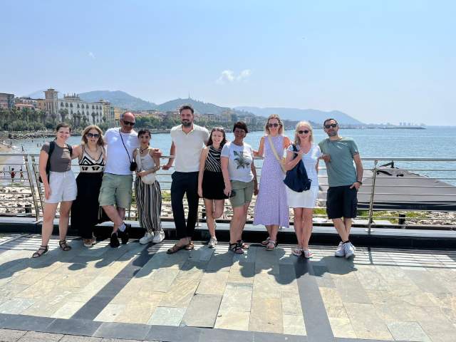 École dans un cadre agréable, bien située dans Salerne . Accueil du personnel très chaleureux et efficace. Excursion et cours de cuisine proposés au cours des deux semaines . Cours particulier pour moi, collectif pour la personne qui m’accompagnait. La professeure (la même dans les deux cas) s’est révélée efficace et extrêmement chaleureuse (en outre elle s’est arrangée pour accommoder au mieux les horaires de cours). Une belle rencontre!