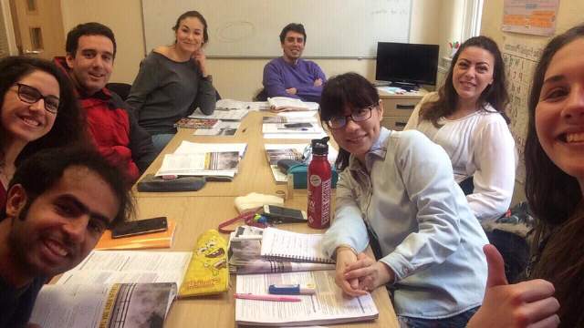 الجنسيات والاعمار مختلطة في المدرسة ودورات عديدة ومستويات عديدة وبفترات زمنية مختلفة.