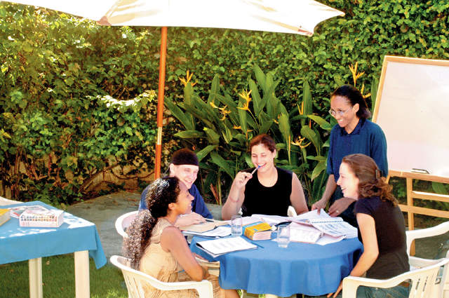تحتوي المدرسة على حديقة خارجية رائعة مفتوحة لجميع الطلاب، مع كراسي مريحة للاستلقاء حولها وطاولة تنس حيث يمكنك تحدي زملائك في الدورة إلى جولة. هناك أيضا مطبخ مشترك للجميع لاستخدامه خلال النهار، لذلك إذا كنت ترغب في إحضار طعامك الخاص أو شرائه في المدينة وإعادته لتناول الطعام، ستجد منطقة مريحة والكثير من الشركات. إذا قمت بإحضار جهاز الكمبيوتر المحمول الخاص بك، فستتمكن من الوصول إلى خدمة الواي فاي المجانية في جميع أنحاء المدرسة، وإذا اخترت عدم ذلك، يمكنك استخدام أجهزة كمبيوتر المدرسة والإنترنت هناك. إنها طريقة رائعة للبقاء على اتصال مع أحبائك في المنزل دون كل تكاليف إجراء المكالمات الهاتفية الدولية والنصوص أو محاولة تصفح الإنترنت من خلال اتصال هاتفك الذكي. يرحب بالطلاب من سن السادسة عشرة فصاعدًا، لذلك يمكن أن يكون ذلك وسيلة رائعة للحصول على دروس في دروس المدرسة أو إضافة رائعة إلى سيرتك الذاتية في سوق العمل الحالي.