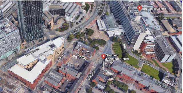 Sheffield Language Centre is located in the city centre, 3 minutes walk from Sheffield Bus andTrain station minutes away from the town centre with shops, coffee shops and restaurants and beside Sheffield Hallam University. Sheffield itself is located in the centre of the UK, with excellent transport links. It's just two hours by train from London, 90 minutes from Birmingham, 50 minutes from Manchester and 40 minutes from Leeds and East Midlands.