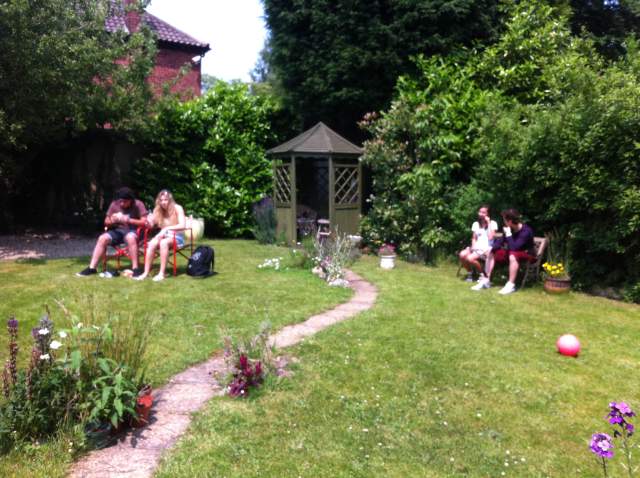 From Monday to Friday morning, I had an English class with other students from different countries (France, Spain, Italy and Saudi Arabia) at the teachers' house. We wrote about the day before, we read and talked in english. In the afthernoon I played games and visited places with the teacher and the others students.